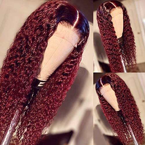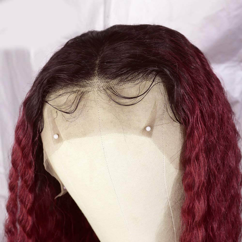 Ombre 1B/99J Long Curly Hair 100% Virgin Human Hair Burgundy Lace Front Wigs